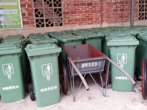 市政协赠送的手推车和垃圾桶