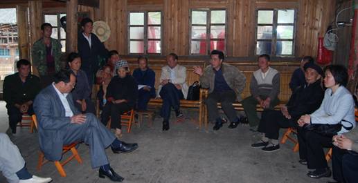 上图为调研组在莫洞村平项屯与水族群众座谈