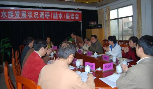 水族是我国人口特少民族之一。我市水族人口4700多人,其中融水县有3800多人,主要聚居在融水县偏远的山区——同练瑶族乡的英洞村,滚贝侗族乡的同心村和永乐乡的北高、洛西村和蒙村。在党的民族政策指引下,水族人口聚居地与其他民族一样,“四通五有三达到”得到了很大改善,群众生活得到较大提高。但是,由于水族群众居住在偏远山区,自然条件差,环境恶劣,经济发展速度、群众生活的提高仍有一定差距。为了全面掌握我区仡佬族、彝族、水族群众聚居村屯经济发展、少数民族群众的生活情况,综合分析存在的问题和困难,促进这些人口特少民族的经济社会同步发展,自治区政协民宗委、自治区民委联合组成专题调研组到各地进行调研。专题调研组在融水县听取了融水县政府的工作汇报,驱车来回100多公里山路,不辞辛劳,深入水族聚居的村屯,到群众家里与少数民族群众座谈,了解情况。通过调研,将有关情况分析综合,尽快向自治区人民政府提出加快扶持这些人口特少民族经济社会发展的意见和建议。