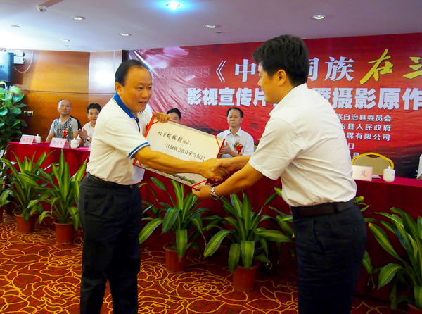 市委常委、三江县委书记李楚参加首映式,并代表县委、县政府为胡锦朝颁发荣誉证书和牌匾。